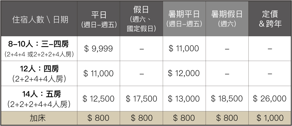 暑期包棟早鳥優惠、平日可少房包棟。加LINE詢問 贈優惠房價!(請傳送貼圖)